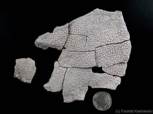 Submitter notes: A rather large and thick section of a plate from an armored fish. The shield shows the characteristic 'bumps'.