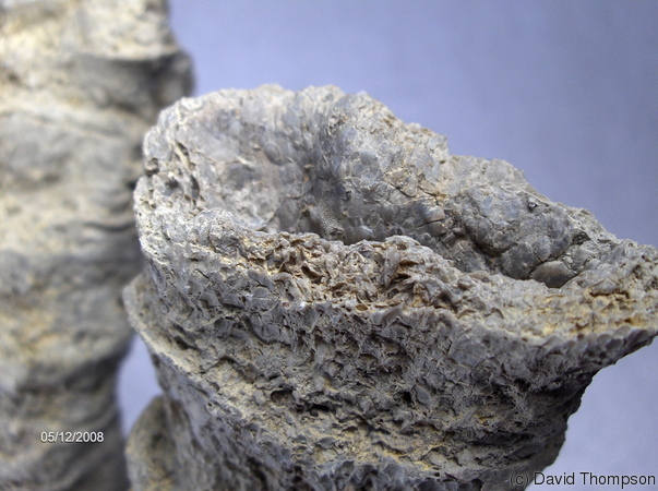 Submitter notes: Calyx view of a beautiful clay-layer coral. The specimen is 62mm high. Unfortunately, the city tinks this site looks better buried under a paved bicycle path!