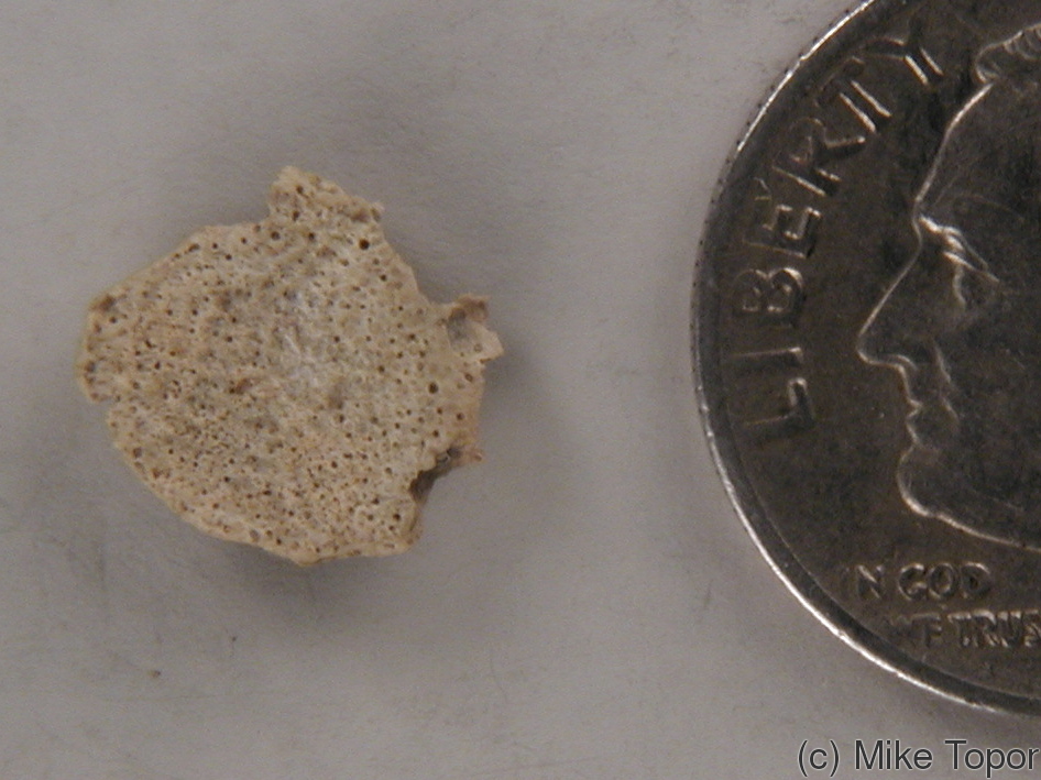 Submitter notes: Bottom View: An extremely rare find in the H.H. member This is the only specimen we have seen. Collected by Richard Barnard. Dime for size.