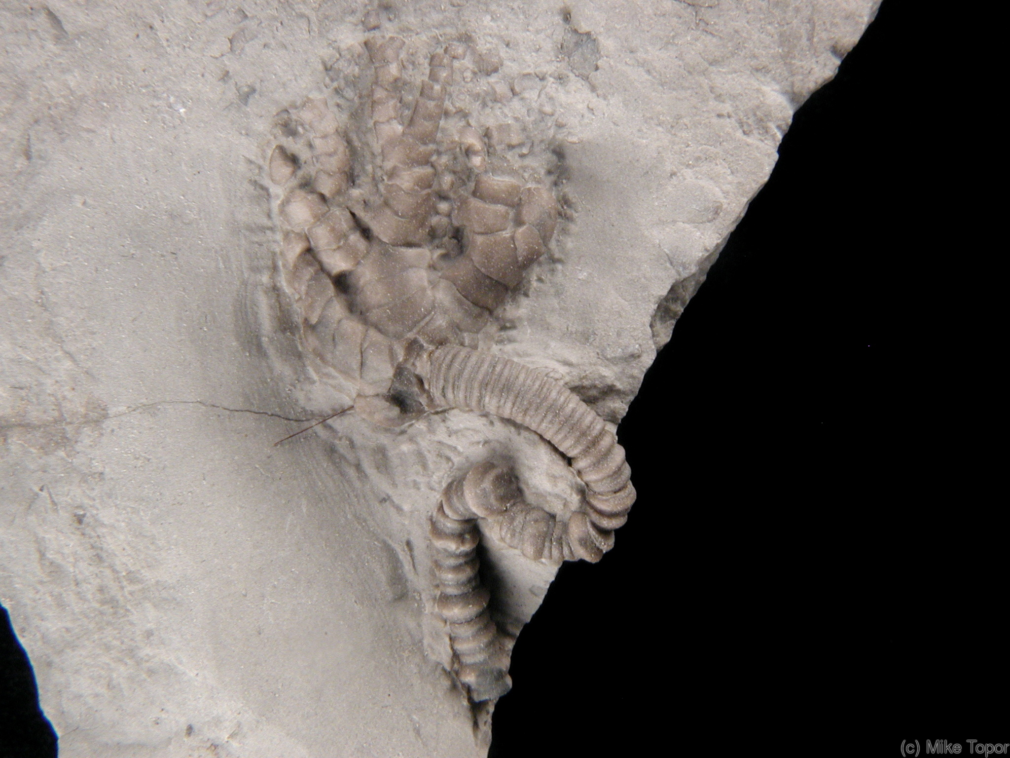 Submitter notes: A rare crinoid crown from the lower Widder formation. The specimen measures 40mm high and is 16.5mm wide.